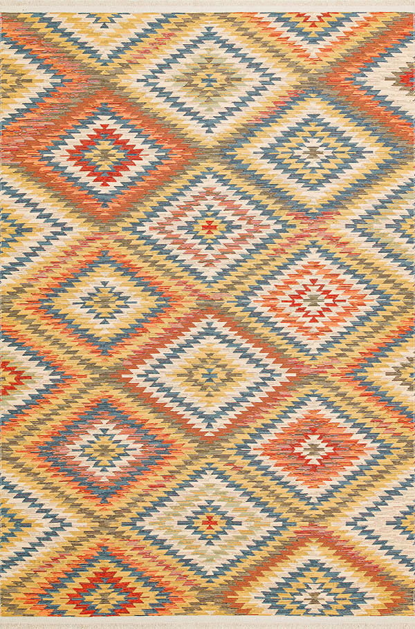 שטיח בסגנון קילים, איכותי ורך למגע, המשלב עיצוב מסורתי עם פרקטיות מודרנית.